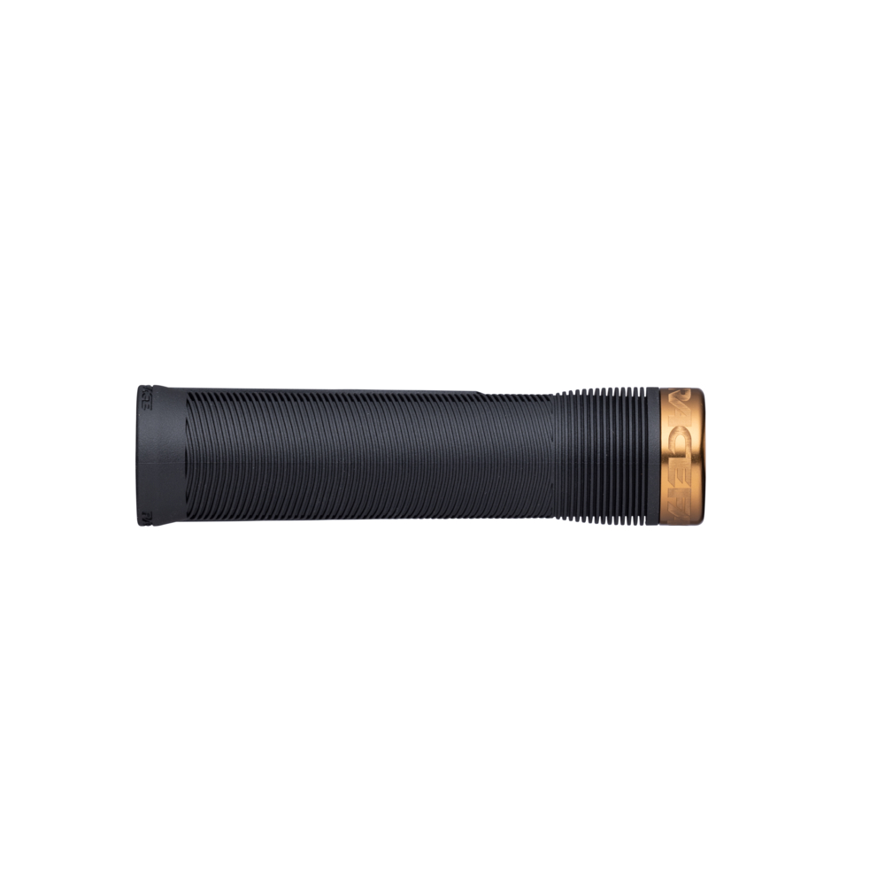 Ročaj je zasnovan na perforiranemu jedru, ki zagotavlja več mehke gume (20A) med vašimi rokami in krmilom. Konusna oblika notranjega dela ročaja ter vdolbina pod prsti nudita natančen občutek oprijema. Narebrena površina ročaja pa zagotavlja dobro odvajanje vlage ter odličen oprijem tudi brez rokavic. Na voljo sta dve debelini ročajev (fi: 30 in 34mm) in v 10. barvnih kombinacijah.