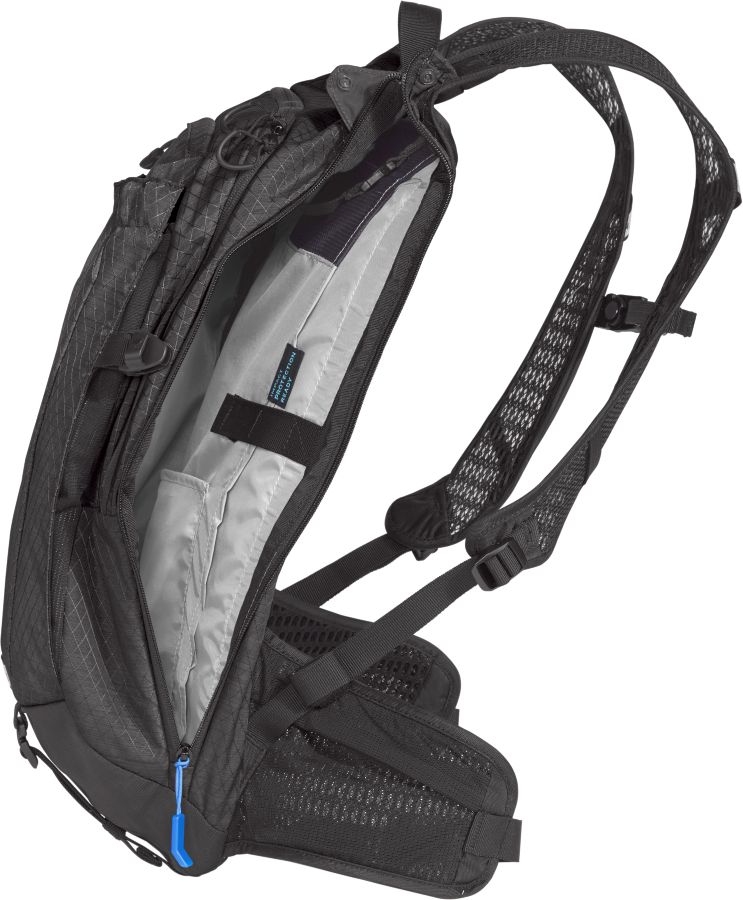 Posebna spredaj nastavljivega traka za prsnico poskrbita, da se bo M.U..L.E. PRO 14 čvrsto prilagajal telesu. Vsebuje tudi prostor za ščitnik hrbta Impact protector, ki je bil posebej narejen za nahrbtnike serije Pro.