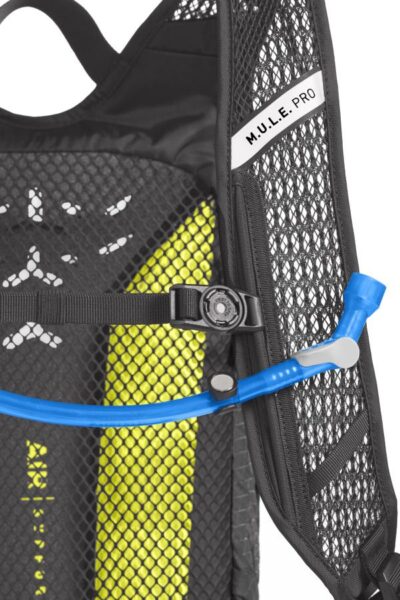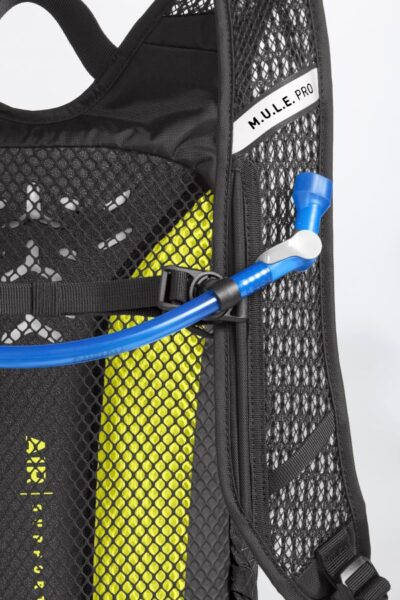 Na hrbtnem delu je prostor z že vstavljenim 3l mehom Crux, ki s tehnologijo Trutaste Hydroguard, skrbi, da okušate vodo in ničesar drugega. Da pa vas cevka za pitje med vožnjo ne moti se ta varno pričvrsti na naramnice.