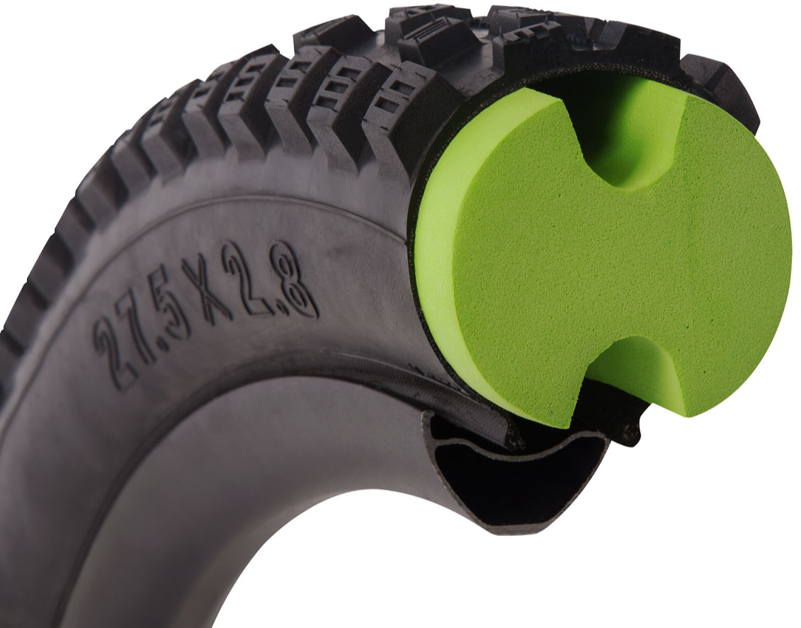 •Vodljivost: Air-Liner nadomešča zrak v plašču. Zmanjšan volumen zraka omogoča plašču, da se bolj kontrolirano stiska in odziva na udarce v primerjavi s standardno verzijo Tubeless plaščem.